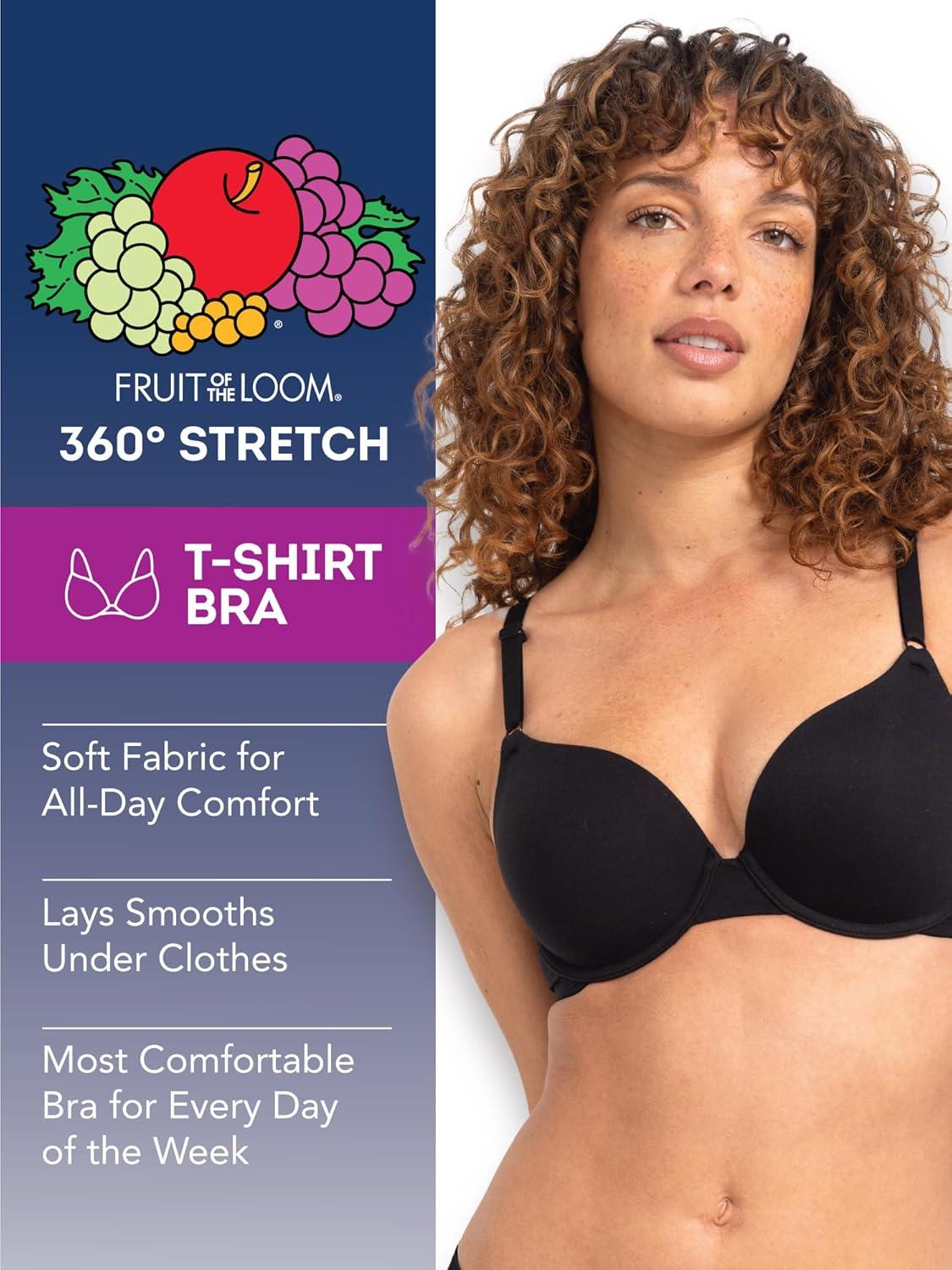 The Fruit of the Loom women's 3-pack T-shirt bra is your new favorite no show bra. The smooth, lightly lined cups are invisible under shirts, but one thing you won't be able to hide is your confidence. This full coverage bra is designed with thick adjustable straps and underwire for all-day comfort and support. Fruit of the Loom has been one of America's most trusted brands for over 160 years. We promise to deliver quality undergarments at an affordable price, always. Start everyday happy with Fruit of the Loom.