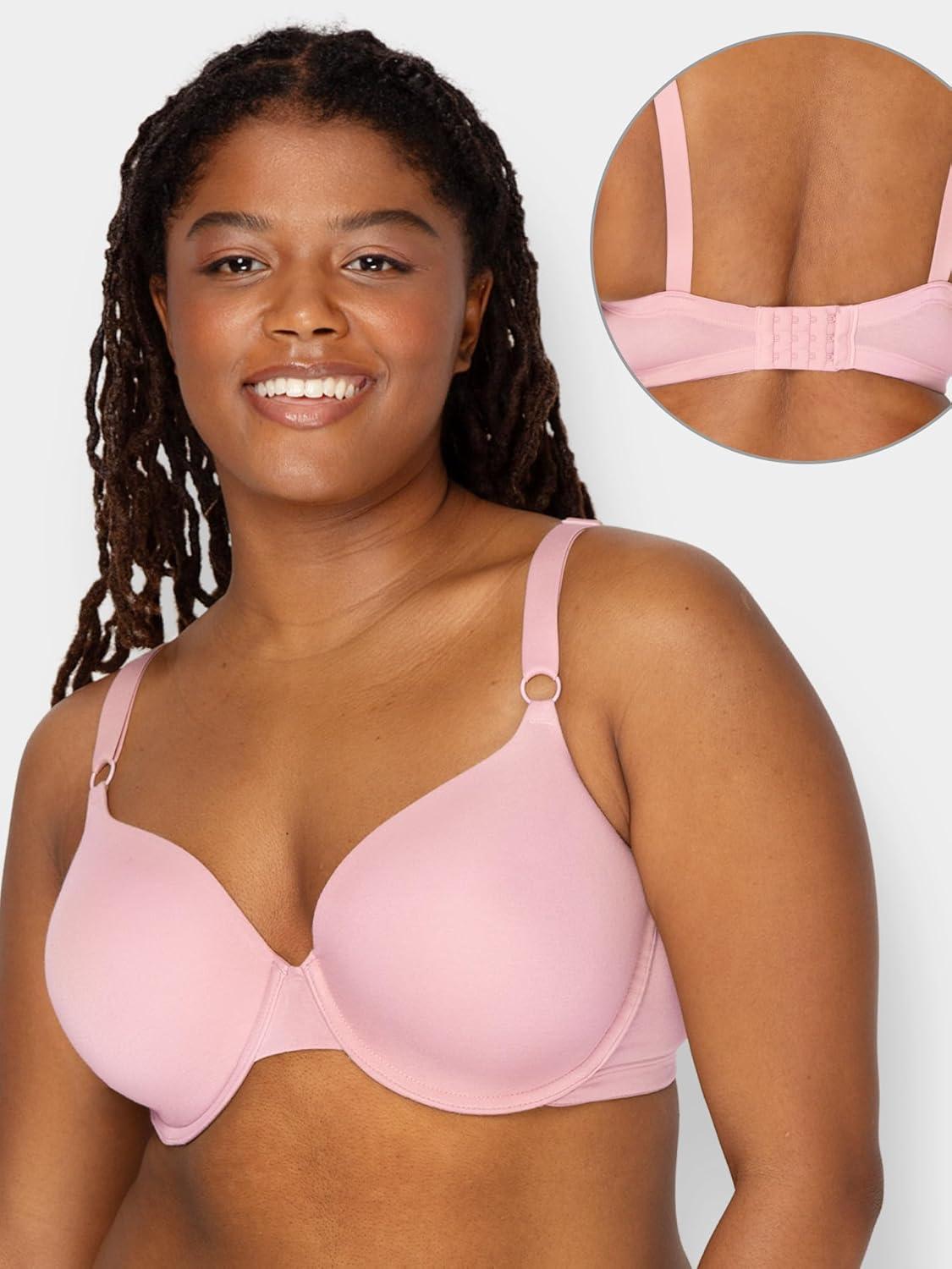 Fruit of the Loom Womens Smooth Cotton T-Shirt Bra – Ultra-Soft, Flexible, and Invisible Under Tees(Grey Heather/Blushing Rose)