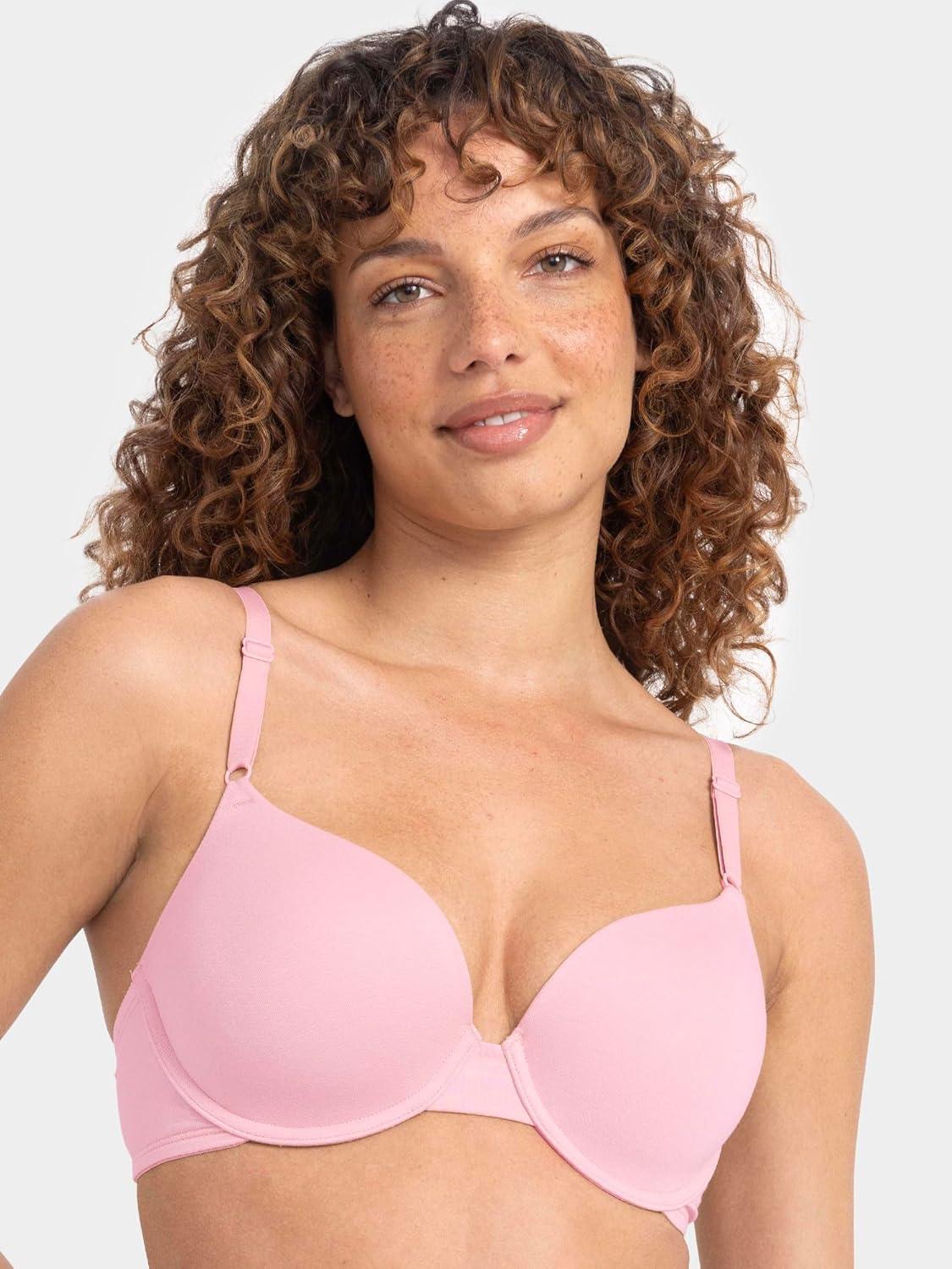 Fruit of the Loom Womens Smooth Cotton T-Shirt Bra – Ultra-Soft, Flexible, and Invisible Under Tees(White/Blushing Rose)