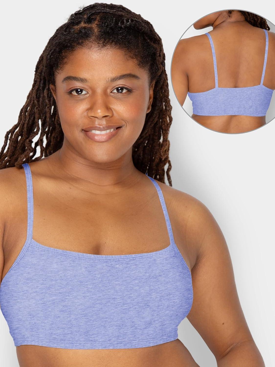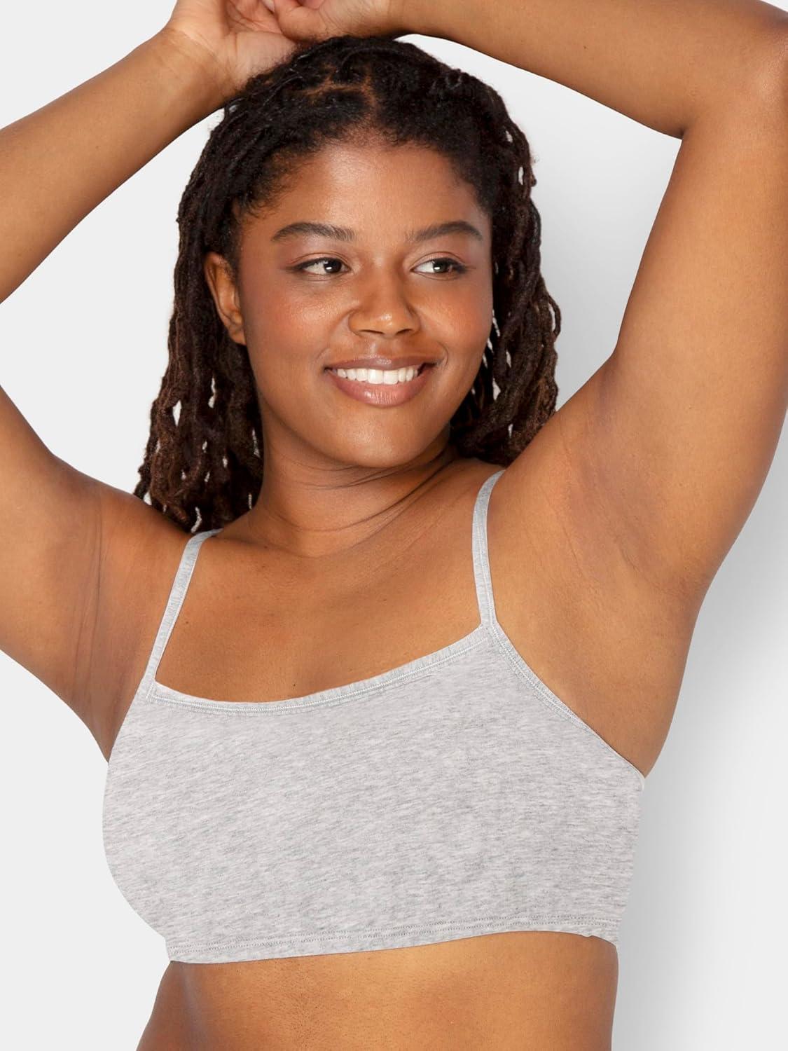 Fruit of The Loom Womens Spaghetti Strap Cotton Pullover Sports Bra Value Pack(Heather Grey/White/White/Blue Heather 4-pack)