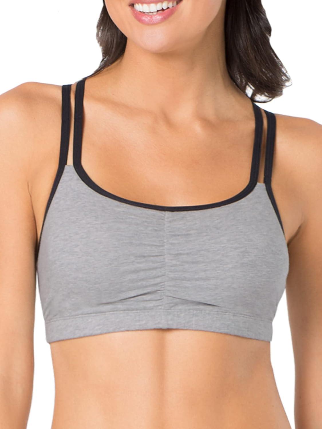 Fruit of the Loom Womens Spaghetti Strap Cotton Sports Bra – All-Day Comfort(Grey With Black/White/Black)