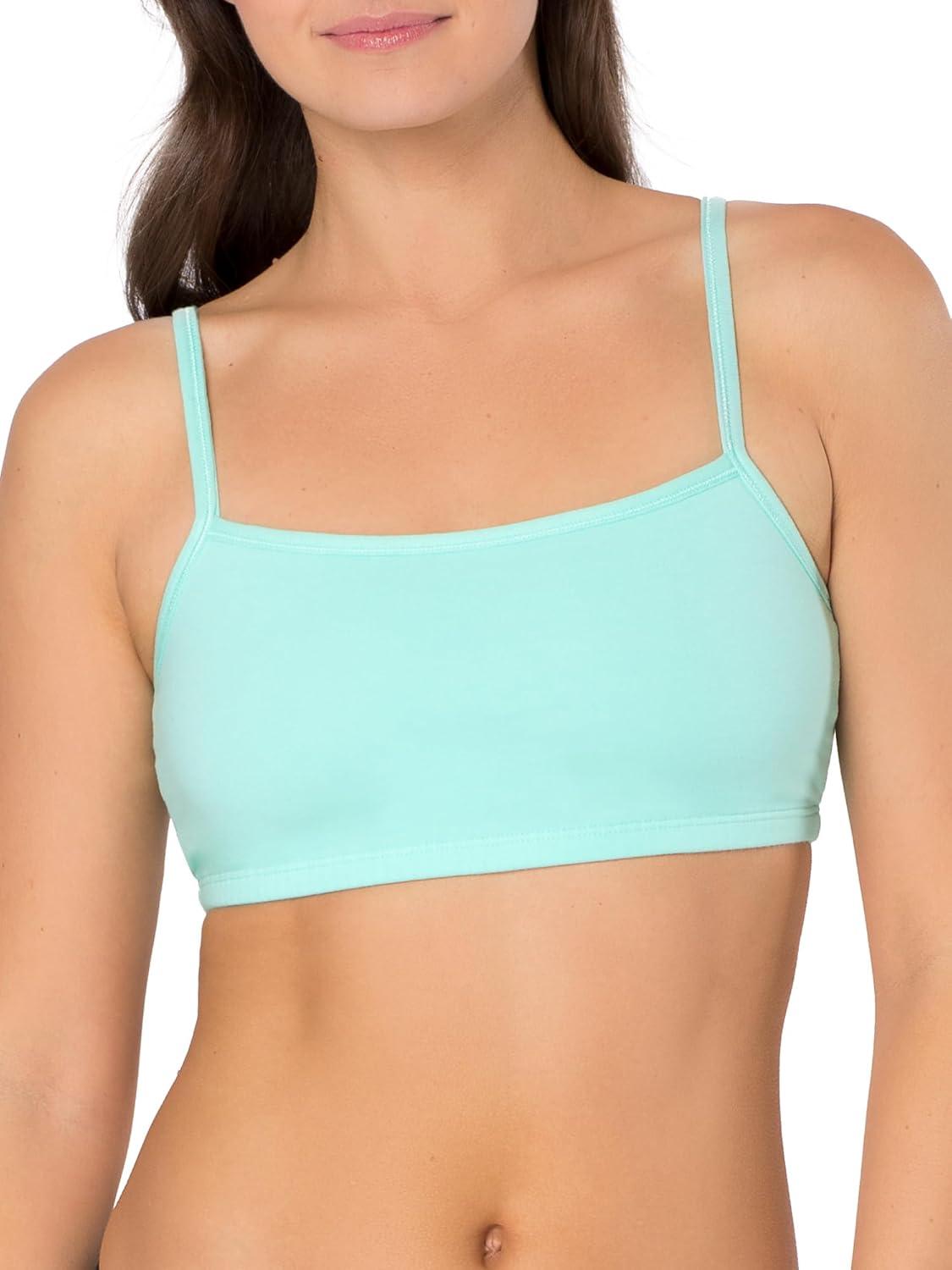 Fruit of the Loom Womens Spaghetti Strap Cotton Sports Bra – All-Day Comfort(Mint Chip/White/Grey Heather)