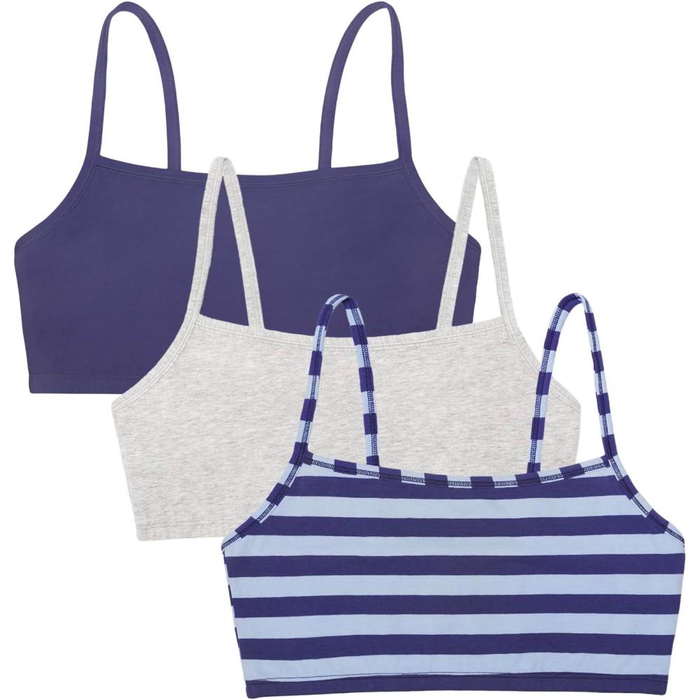 Fruit of the Loom Womens Spaghetti Strap Cotton Sports Bra – All-Day Comfort(Rugby Stripe/Skipper Blue/Heather Grey)