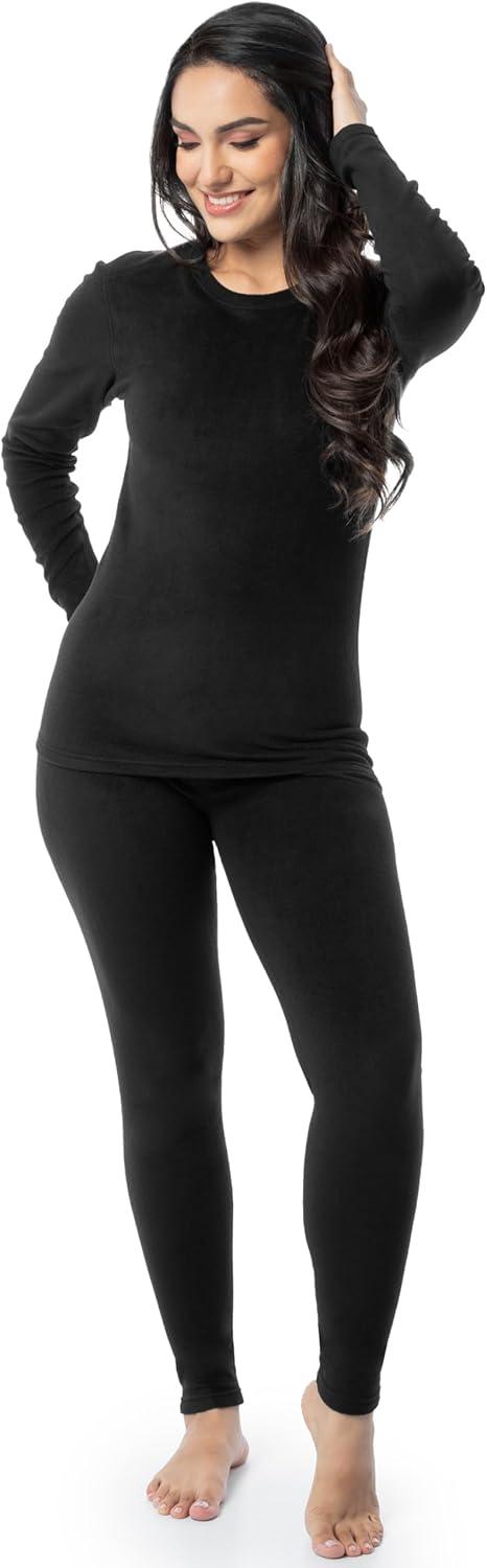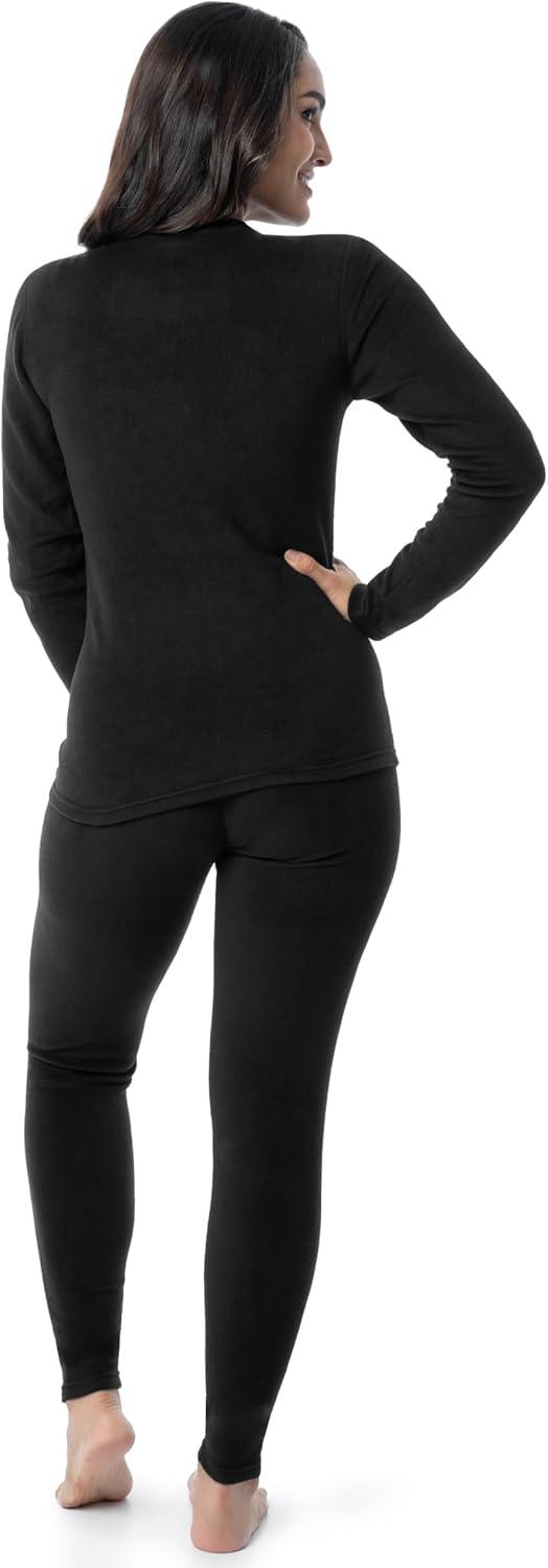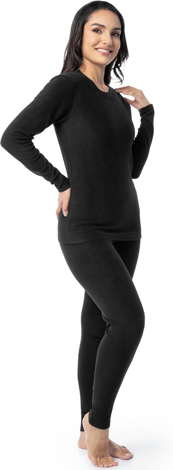 Fruit of the Loom womens Stretch Fleece Lined Thermal Long Johns Underwear Set(Black)