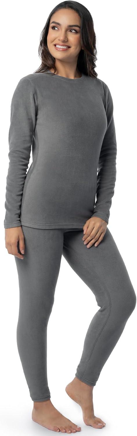 Fruit of the Loom womens Stretch Fleece Lined Thermal Long Johns Underwear Set(Grey)