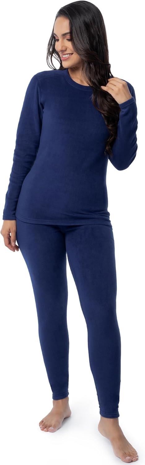 Fruit of the Loom womens Stretch Fleece Lined Thermal Long Johns Underwear Set(Indigo Ocean)