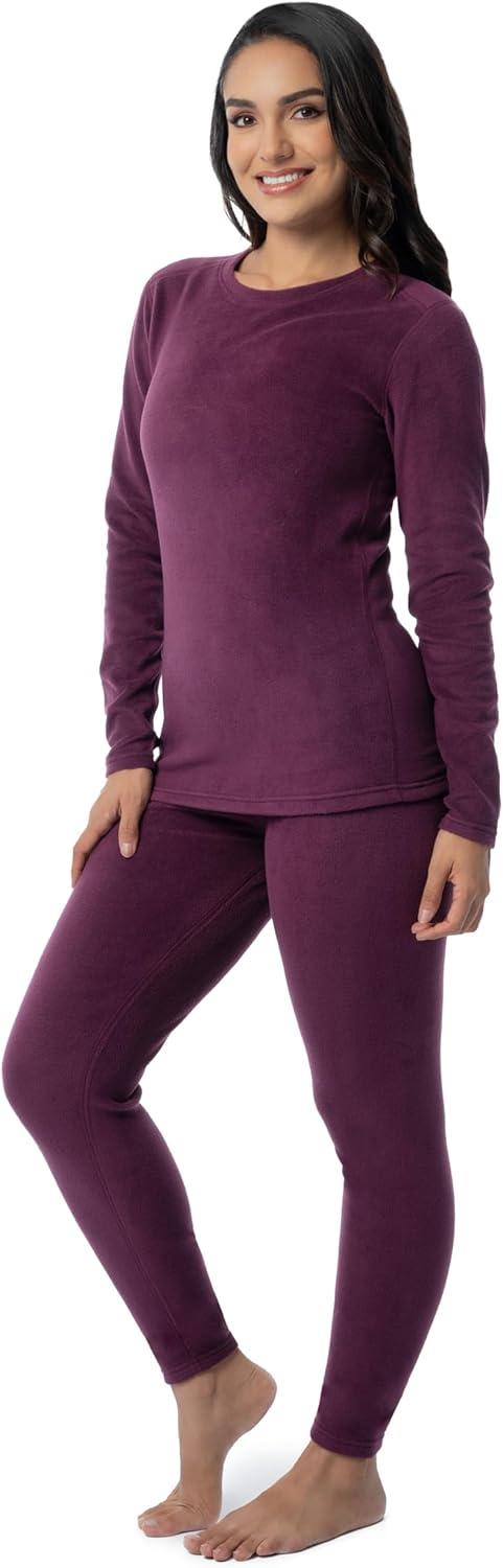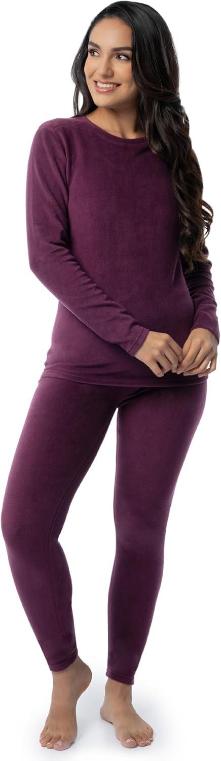 Fruit of the Loom womens Stretch Fleece Lined Thermal Long Johns Underwear Set(Plum)