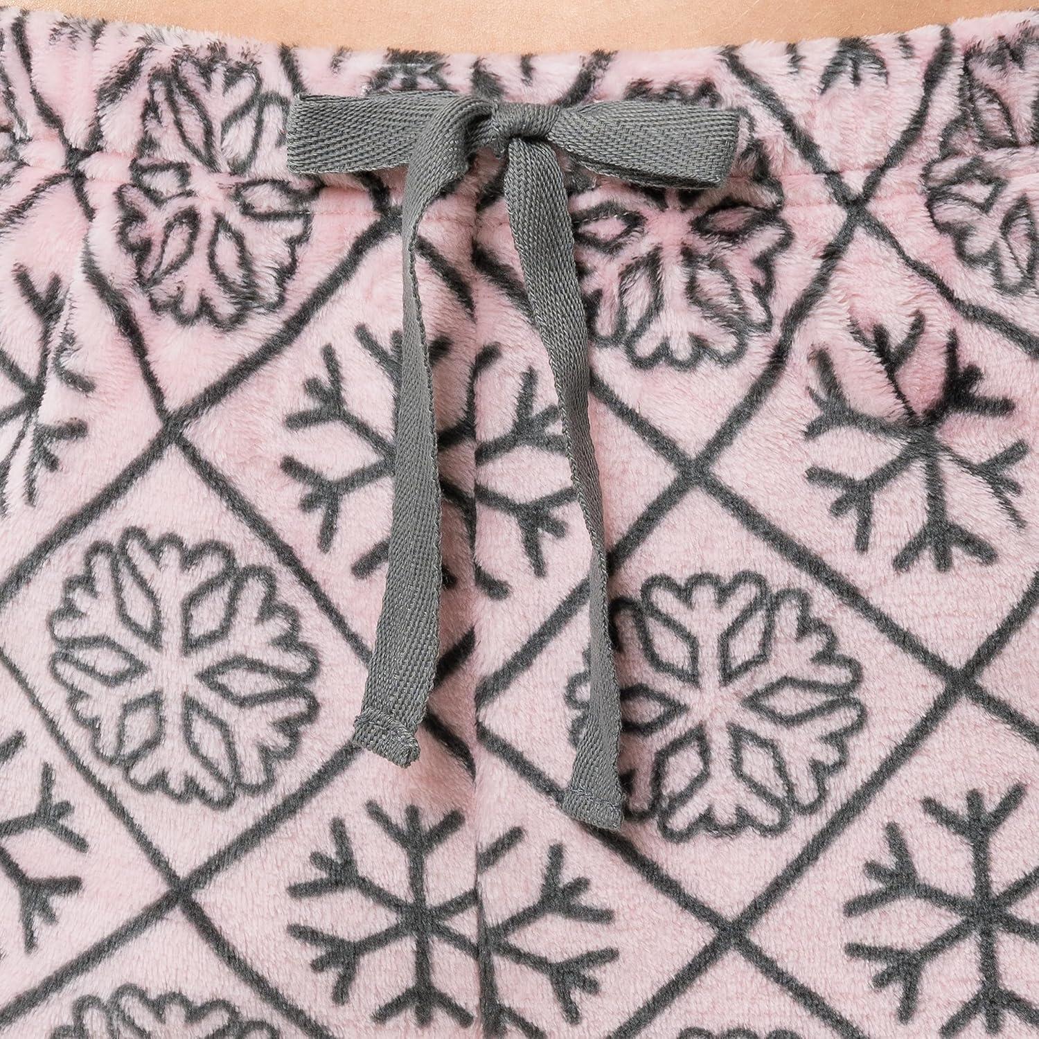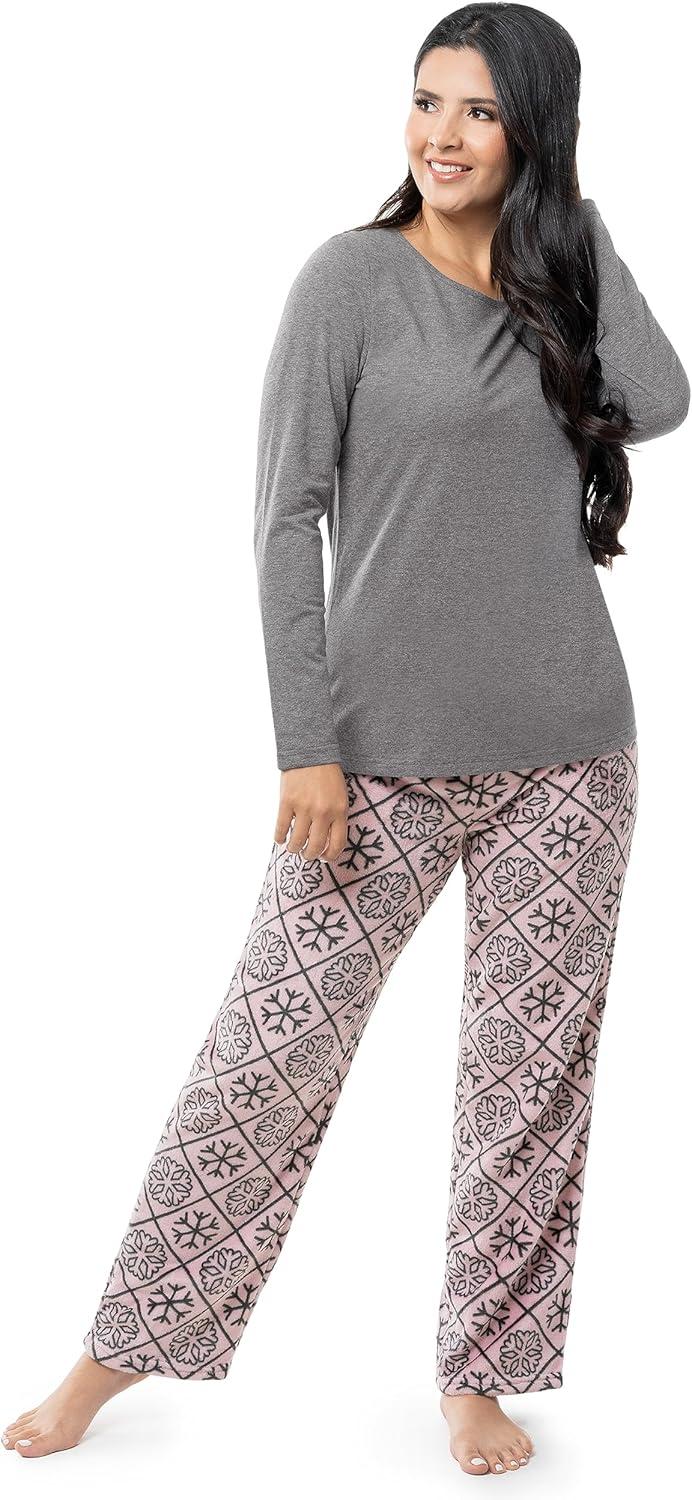 Fruit of the Loom Women’s Sueded Jersey Crew Top and Fleece Pant Sleep Set(Heather Grey/Snowflake)