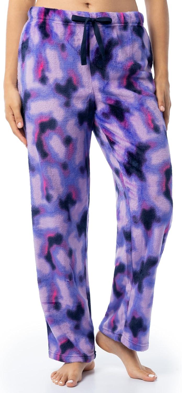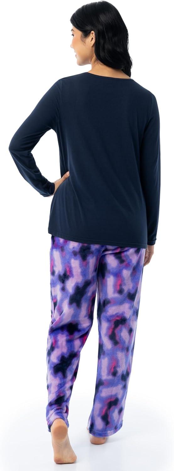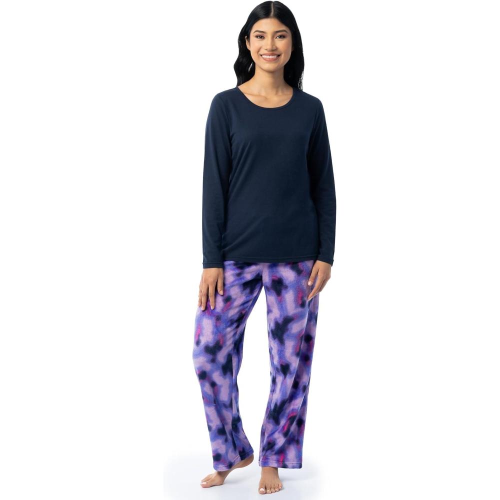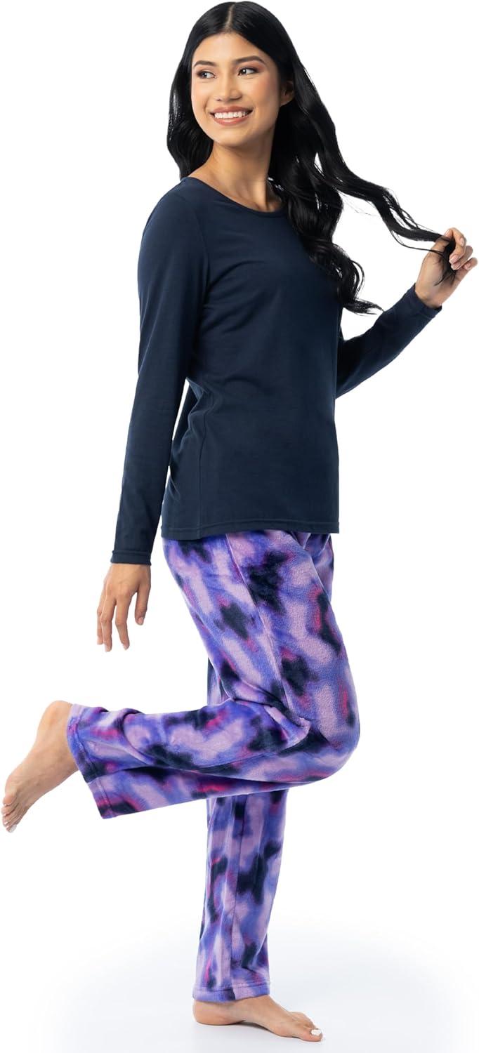 Fruit of the Loom Women’s Sueded Jersey Crew Top and Fleece Pant Sleep Set(Navy/Abstract)