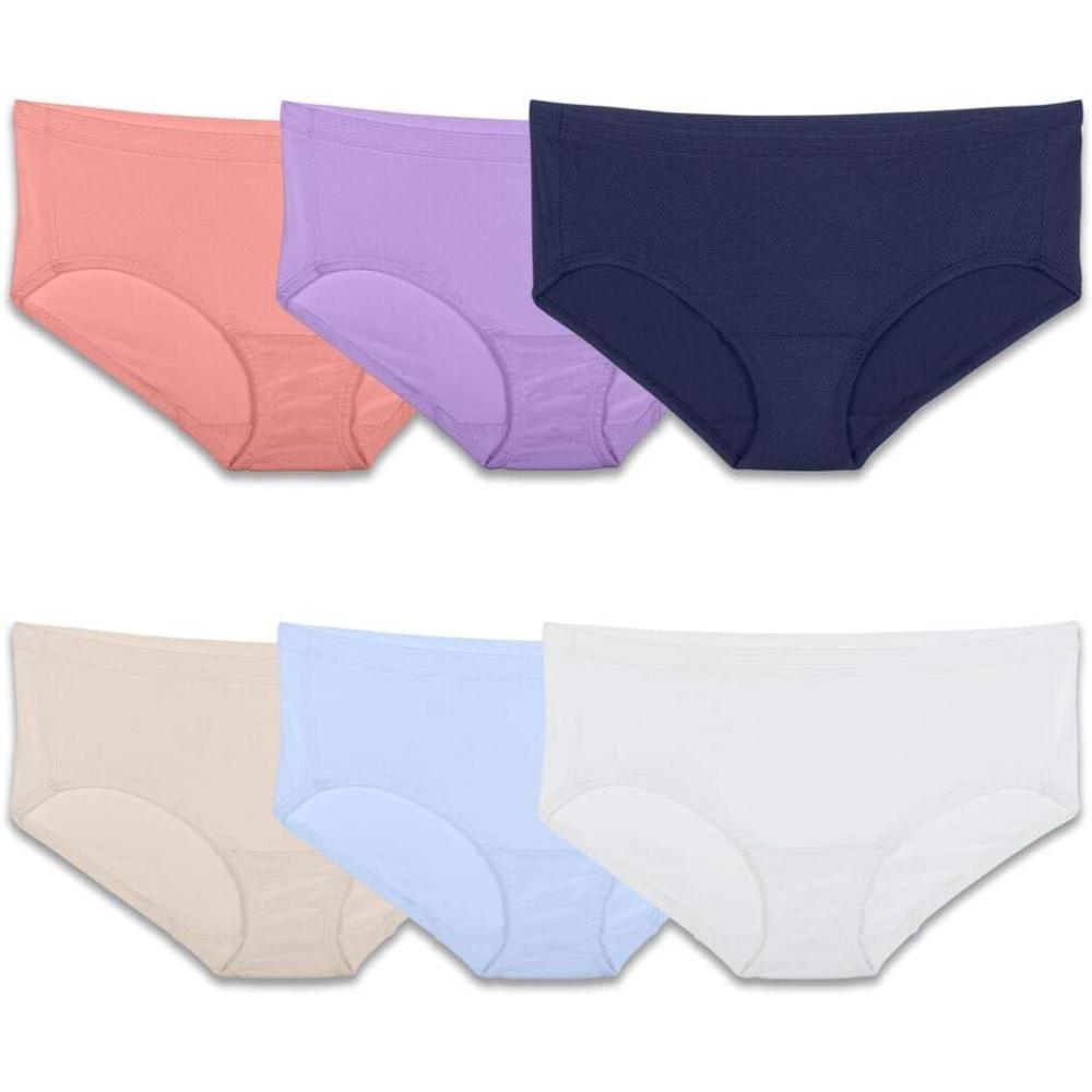 Made with breathable, micro mesh fabric, these Fruit Of The Loom low rise brief panties support the flow of air for a lasting fresh feel. The tag free, soft leg bands combined with the smooth waistband provide added comfort while looking good under clothing.